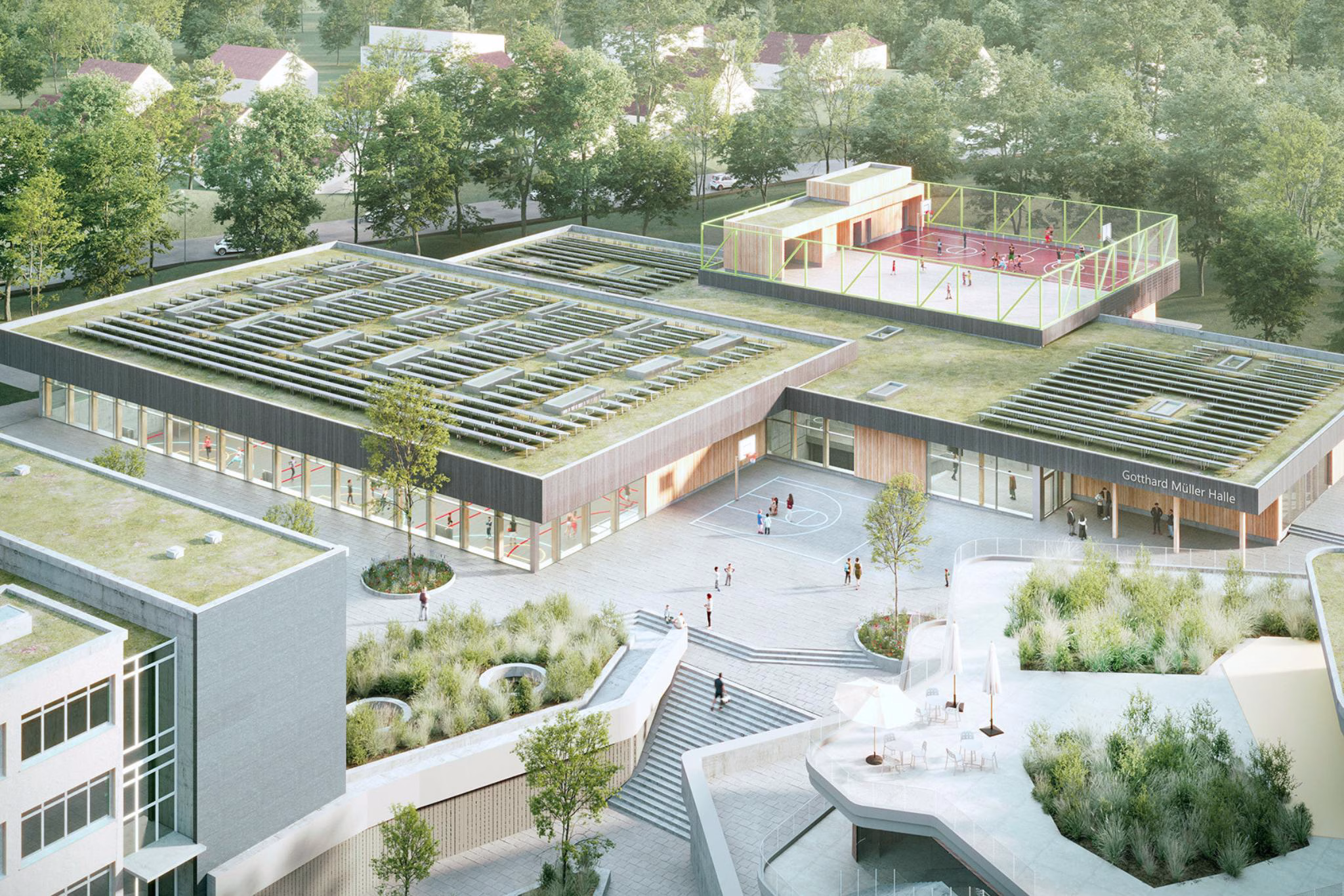 Wir freuen uns sehr, den Holzbau für das Jugendzentrum und die Dreifachsporthalle der Gotthard Müller Halle in Bernhausen (Filderstadt) zu übernehmen. Der Entwurf stammt von LBGO Architekten, die Visualisierungen von Grauwald Studio. Wir freuen uns auf die Zusammenarbeit mit allen Projektbeteiligten.